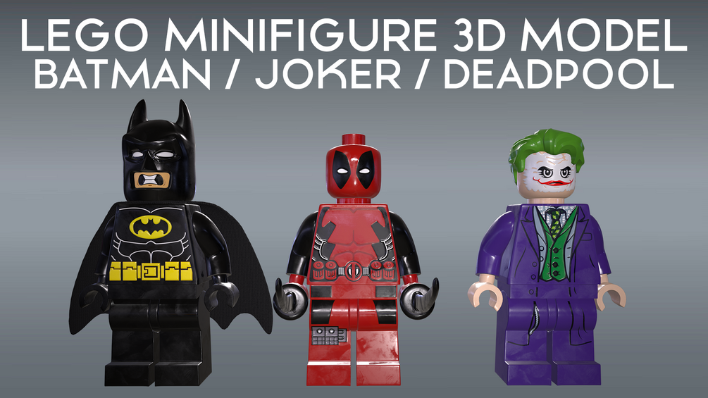 You will get obj, fbx and Maya files (rigged) of LEGO Batman, LEGO Joker and LEGO Deadpool
